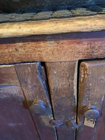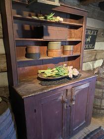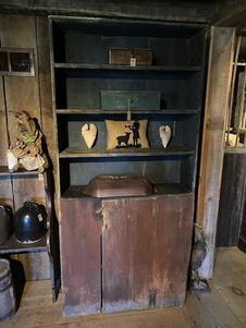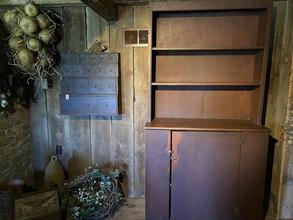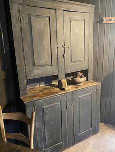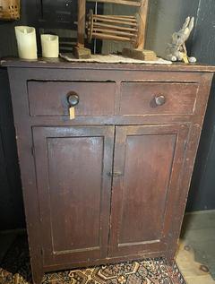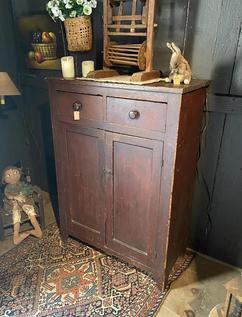 Early red chimney cupboard 50 high; 30 wide; 21 deep. A sweet cupboard. $1890
