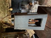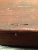 Early riser with the best early gray paint. Sitting on a table, it looks like a tri corn hat box 26 by 7. Grungy $750