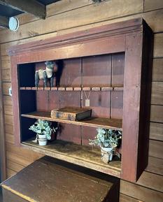Very nice shelf unit in old dark red paint 67 tall ny40 wide and 11 deep. $990