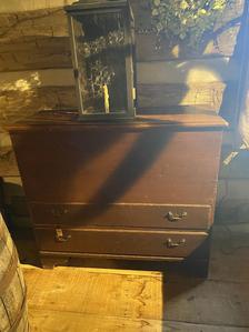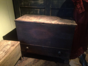 Here’s an adorable two drawers dark blanket box. Snipe hinges. The best early red paint and mushroom knobs. Hand planed. Glove box. Just adorable. 40 by 37 by 17 deep