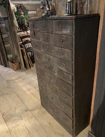 Here’s a gorgeous apothecary in beautiful red. Decorates wonderfully. Fits into any room. I hope you come to see this beauty. 27 drawers. 54 high by 30-1/2 wide and 13 deep. $3900