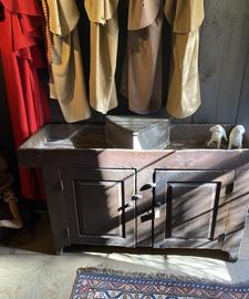 Small dry sink and only $650. 29 tall by 41-1/2 wide and 17 deep. Great old red paint