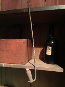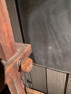 Here’s an all original early lighting piece in old red. Old wooden screw for adjusting. 38 inches tall by 8 inches. $1250