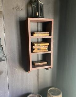 Sweet little hanging shelf unit. Beautiful red paint and made so well. It measures 25 tall by 11 wide and 6 inches deep $740.00