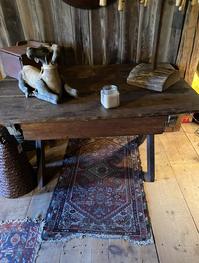 Sweet sawbuck with scrub top. Two board top. Dark with black base. 28-1/2 wide by 29 tall by 43 long $595