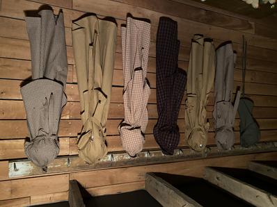 We make a variety of colors in our apron and bonnet sets. Lots of wear. Come over and see our wool capes we make here too