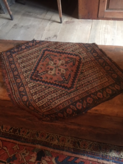 Love the colors in this table top oriental rug. 23 by 22. $395.00